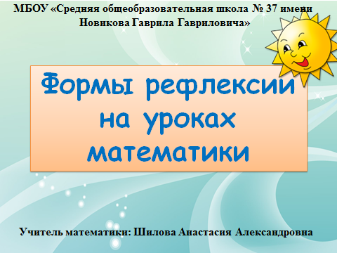 статья позаимствована с сайта: инфоурок автор статьи: Шилова Анастасия Александровна, учитель математики Формы рефлексии на уроках математики